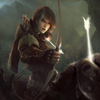 a female warrior or archer. She is depicted holding a bow and arrow, suggesting she is either in