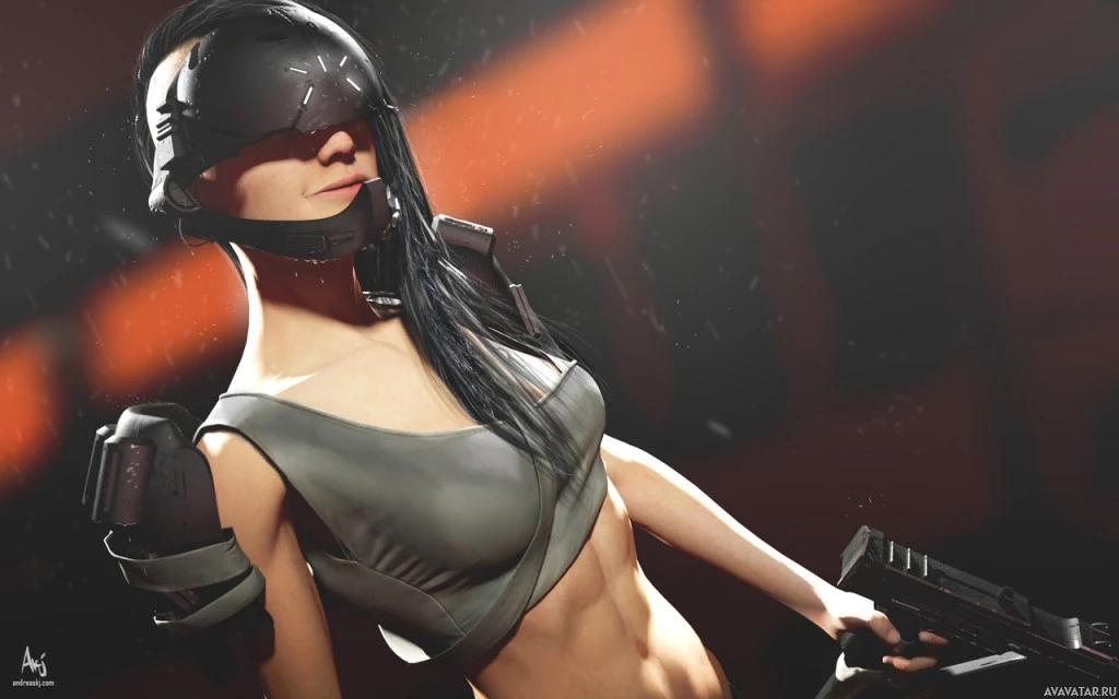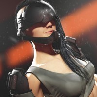 a female character, likely from a video game or graphic novel. She is depicted wearing military-style clothing and gear, including what appears to be