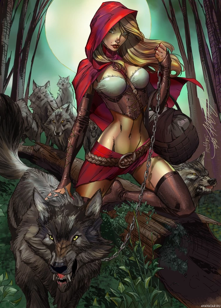Картинки и фото на тему Красная шапочка | Скачать аватары с Красной шапочкой | Red Riding Hood | Стильное изображение волков и центральная женская фигура