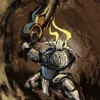 intricate patterns and designs indicative of his character's strength and mystical nature within the game.