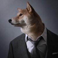 a Shiba Inu, which is a breed of dog known for its fox-like features. The dog appears to be wearing