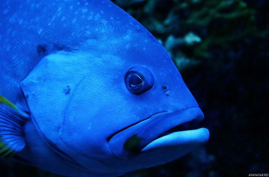 На снимке изображена синяя рыба, которая, по-видимому, является одним из видов шерсти. У него яркое синее тело и белая область вокруг рта. Этот вид часто встречается в мелководных тропических водах и известен своим красочным внешним видом.