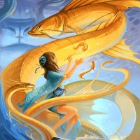 sea creatures visible around her. The overall scene is quite whimsical and fantastical in nature.