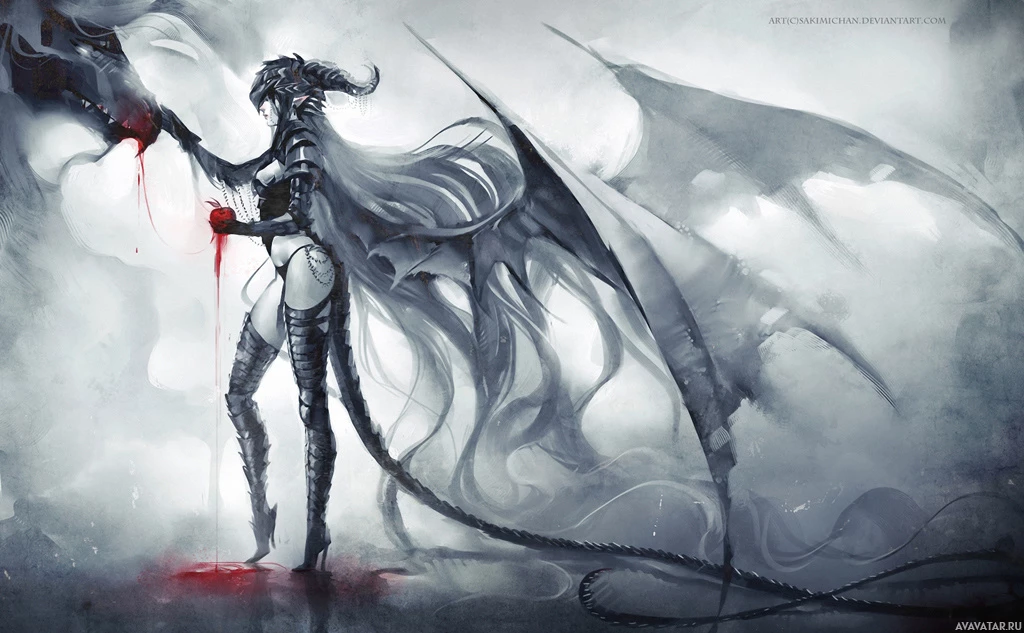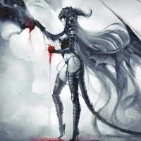 an illustrated character that appears to be a fantasy-themed creature resembling a succubus, which is often depicted in mythology and folklore as a seductive spirit or demon. This particular representation shows the character with wings and what could be interpreted as horns or ears, holding a staff adorned with what appears to be a heart at its base. The art style suggests it might be from