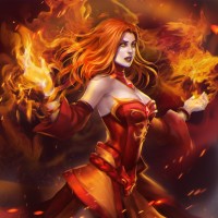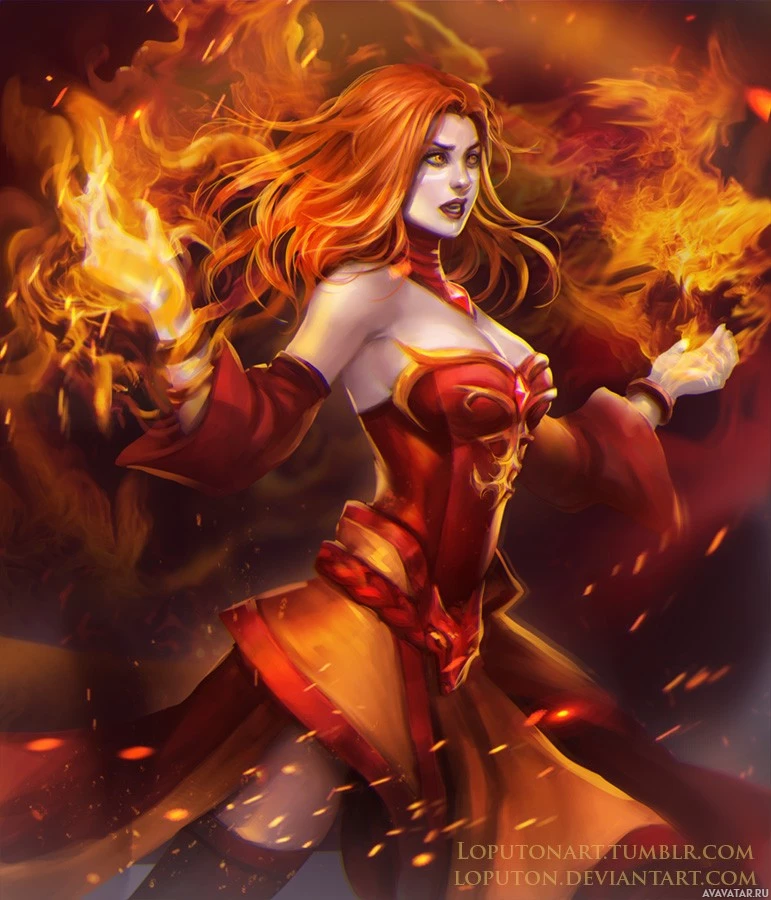 the video game Dota 2, known as Lina. She is shown in her popular form, with long