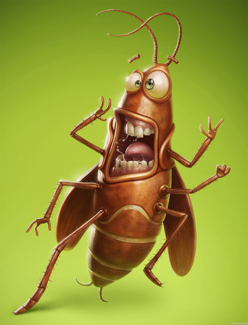 facial expressions. It is depicted in a pose that suggests surprise or excitement, with its arms out to the sides and mouth open wide in