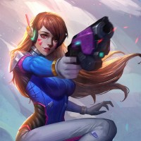 an illustrated character, who appears to be D.Va from
