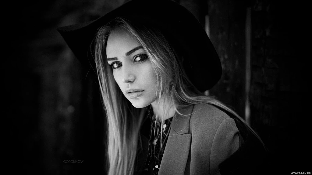 a dark blazer over what appears to be a dress or top. The woman also has a hat, which could be described as having a "gothic" style. Her expression seems contemplative or serious, and she has