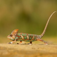 rocky ground. Chameleons are known for their ability to change color, often for camouflage purposes, and this particular chameleon exhibits
