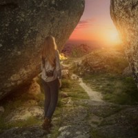 the warm hues in the sky. The terrain looks rugged and natural, possibly indicating a location known for its geological features or outdoor