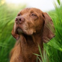 brown fur and its ears are perked up, possibly indicating alertness or interest in something around it. This could be an example of animal photography intended to capture the beauty or character of the subject against