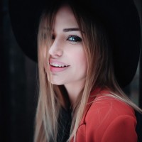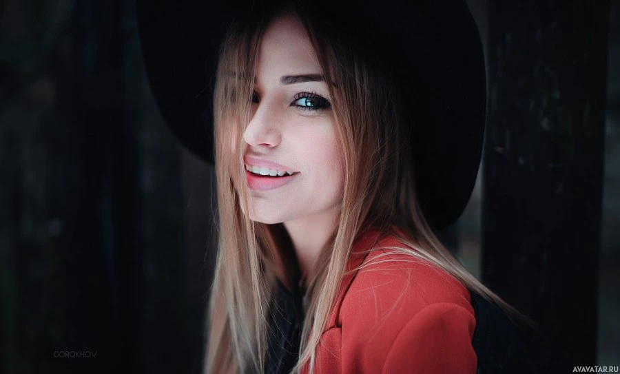 blonde hair. She is wearing a hat and has her hair pulled down over one eye, which gives her a playful and casual look. The woman is smiling brightly at the camera, exuding