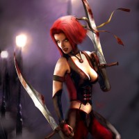 a female character who appears to be based on the character Bloodrayne from the video game series of the same name. She is depicted with