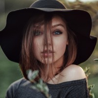 an air of mystery. They are looking down, away from the camera, which gives the photo a contemplative or introspective vibe. The background suggests