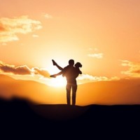 warm tones to highlight the silhouette and the effect of the sunlight, enhancing the overall mood of the scene. The absence of detailed features in the image places emphasis on the shape and