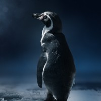 The image features a penguin standing on what appears to be an ice floe at night. It's a digital illustration that captures the essence of a lone penguin in a dramatic and somewhat somber setting, possibly indicating a sense of isolation or solitude.