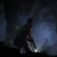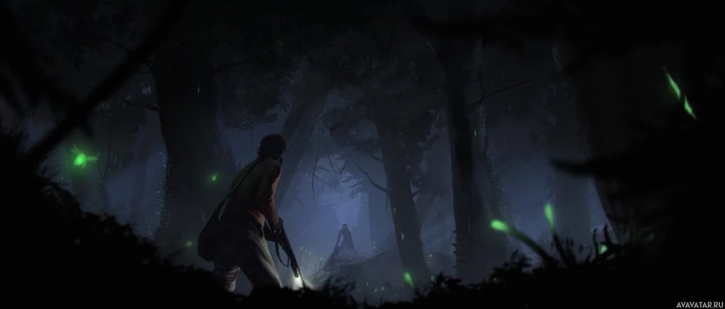 an eerie atmosphere indicative of a dark or mysterious setting in the game or animation. The characters seem to be engaged in some sort of adventure or quest in this