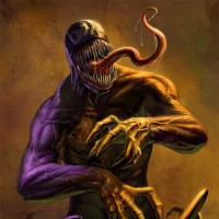 a fictional character from the Spider-Man comics. Venom is shown with exaggerated muscles,