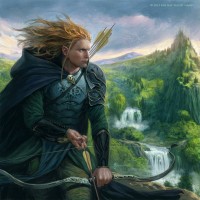 high fantasy settings. The elf is dressed in armor that seems to be made of