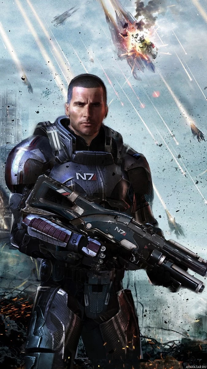 the video game "Mass Effect." The character is wearing