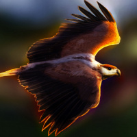 На снимке изображена хищная птица, которая выглядит как ястреб, в полете. У него полностью вытянутые крылья и он захватывается в середине полета с немного размытым фоном, подчеркивая движение и свободу птицы.