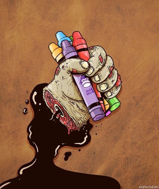 liquid substance, possibly representing paint or ink. This creates an unusual and artistic scene that could be interpreted as the hand being overwhelmed by its own creativity or perhaps being covered by the very tools it uses for creating.