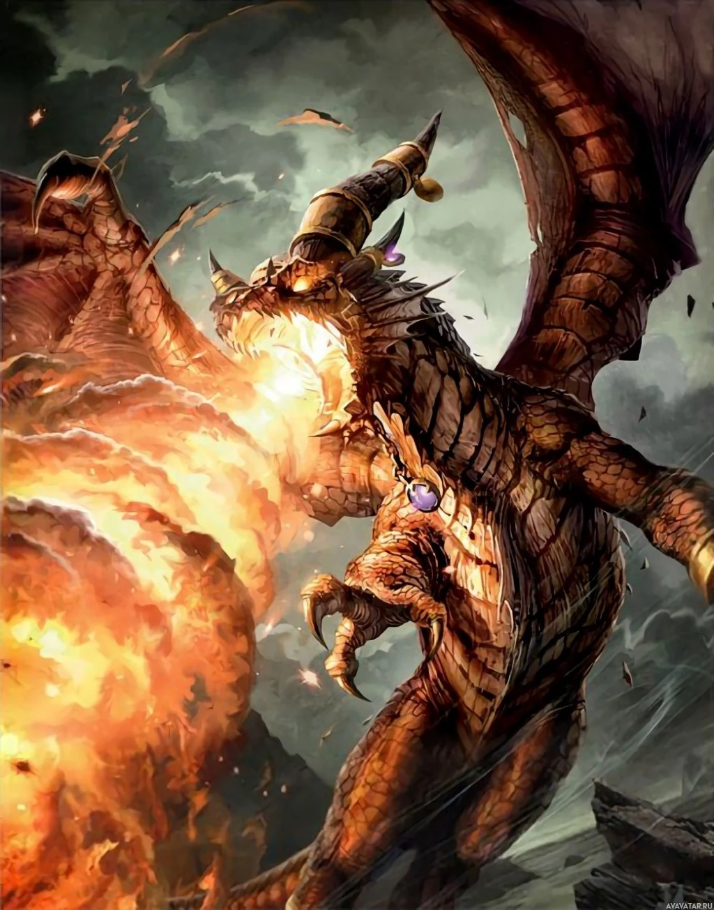 stormy sky with clouds, contributing to the dramatic atmosphere of the scene. Overall, the picture captures a sense of conflict or confrontation between the two dragons in