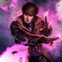 The image features a character that resembles Gambit from the X-Men comic book series, depicted with