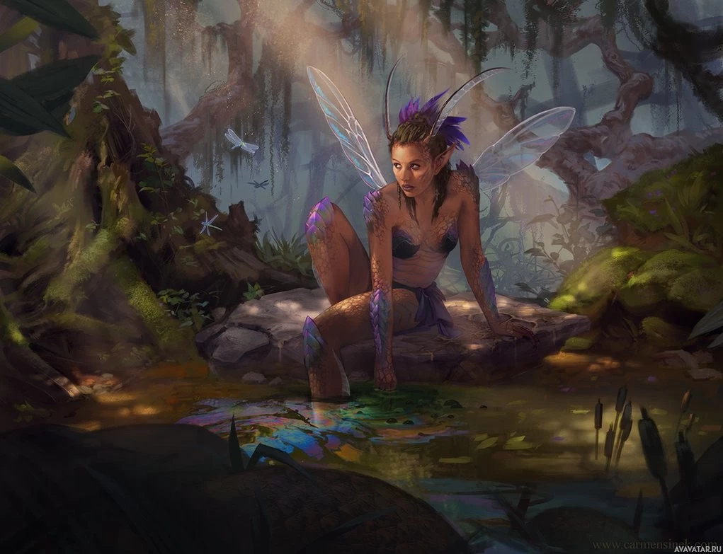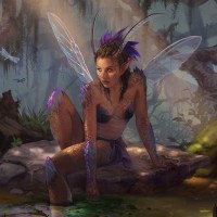 a fantasy creature, commonly known as a fairy. The character depicted has a humanoid form but also possesses features reminiscent of the faerie folklore such as