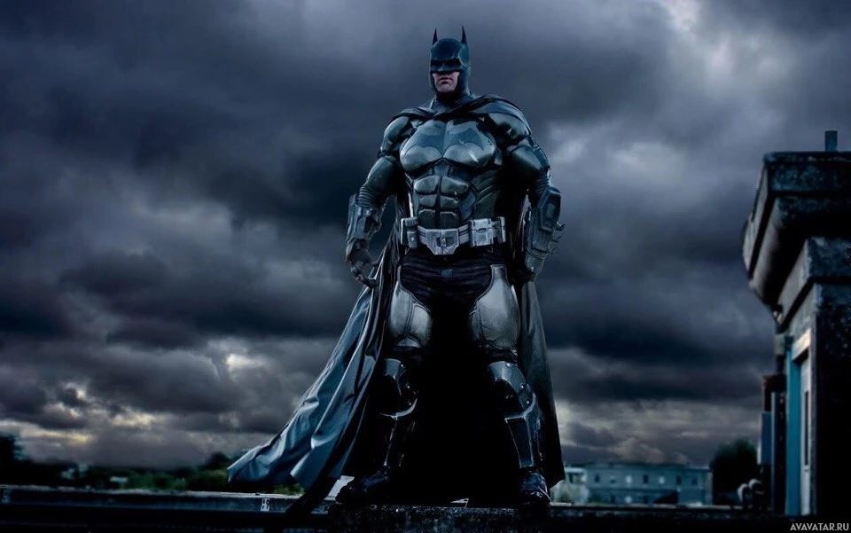The image features the character Batman, a fictional superhero known for his role in comics and