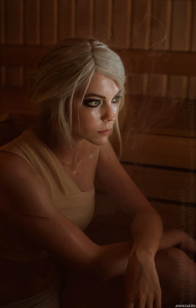 The image features a person dressed in costume, portraying the character of Ciri from