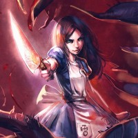 the classic tale "Alice in Wonderland". She is depicted wielding