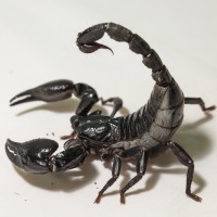 The image features a scorpion. It appears to be a close-up shot, focusing on the details of its body and tail segments, which are characteristic of this type of animal.