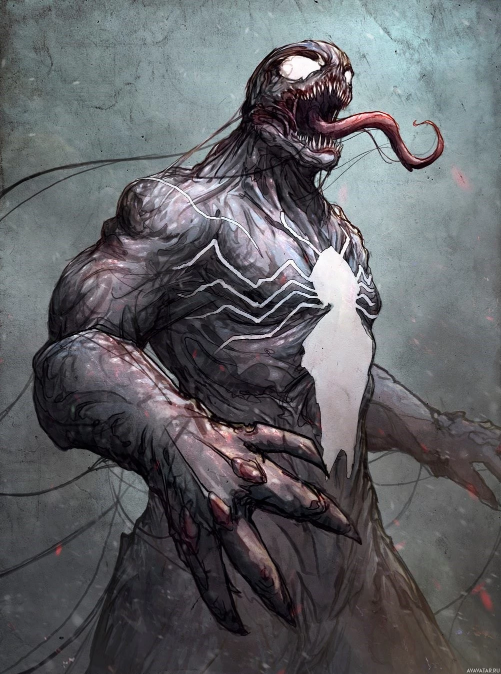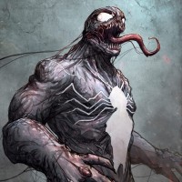 The image shows a character that appears to be Venom, a well-known villain from the Spider-