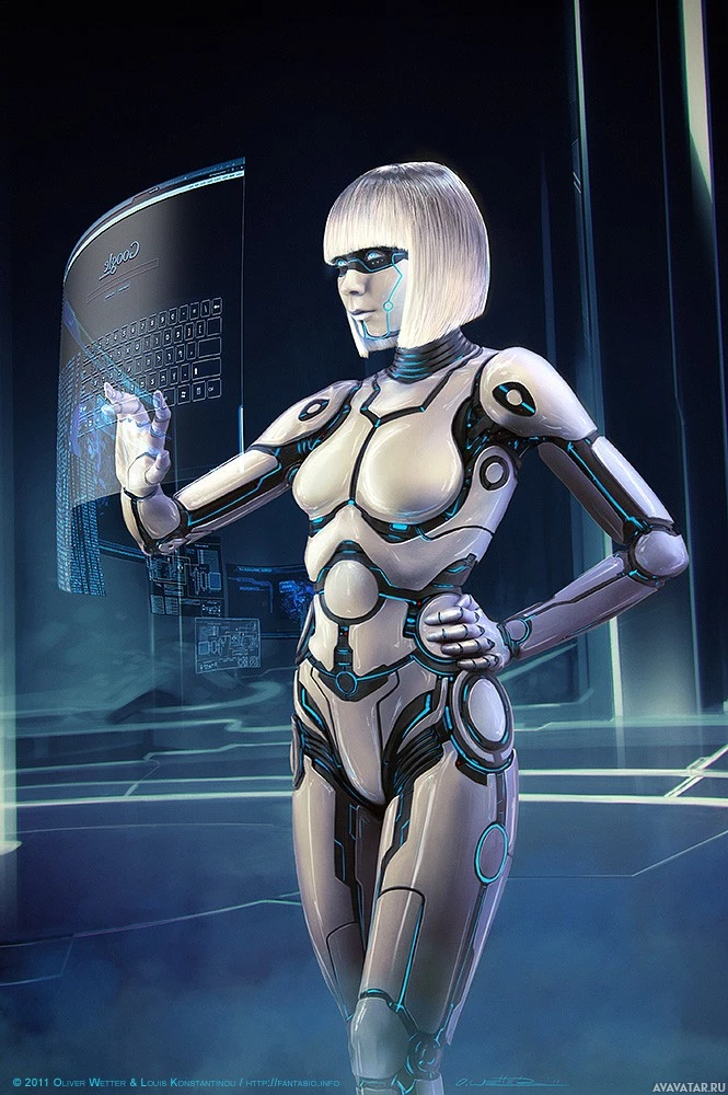 modern design with a metallic finish and is adorned with various technological elements, such as circuitry and possibly some kind of headpiece or helmet that might have a visor or display screen on it. The background suggests