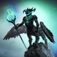 the video game Dota 2. This character is often recognized by its armor and mask, which give it a formidable appearance. The character is shown standing in what appears to be a celestial or magical environment, with stars around it, suggesting