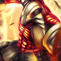 The image depicts an animated character that appears to be from the game "Dota 2." This character is commonly known as Sven, a melee strength hero with enhanced physical abilities. The character is shown in a dynamic pose with sparks flying around him, suggesting he might be using his powers or performing a special move.