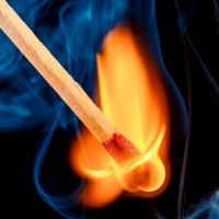 blue smoke, which is characteristic of the flame's heat reacting with air. This