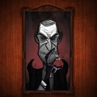 vibrant colors and a slightly cartoonish take on what seems to be a monster or an alien creature. It's displayed within a frame that mimics a traditional painting, suggesting that it might be a decorative piece within