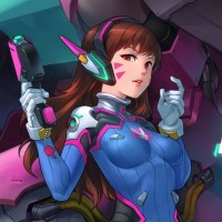 an animated character, D.Va, from