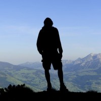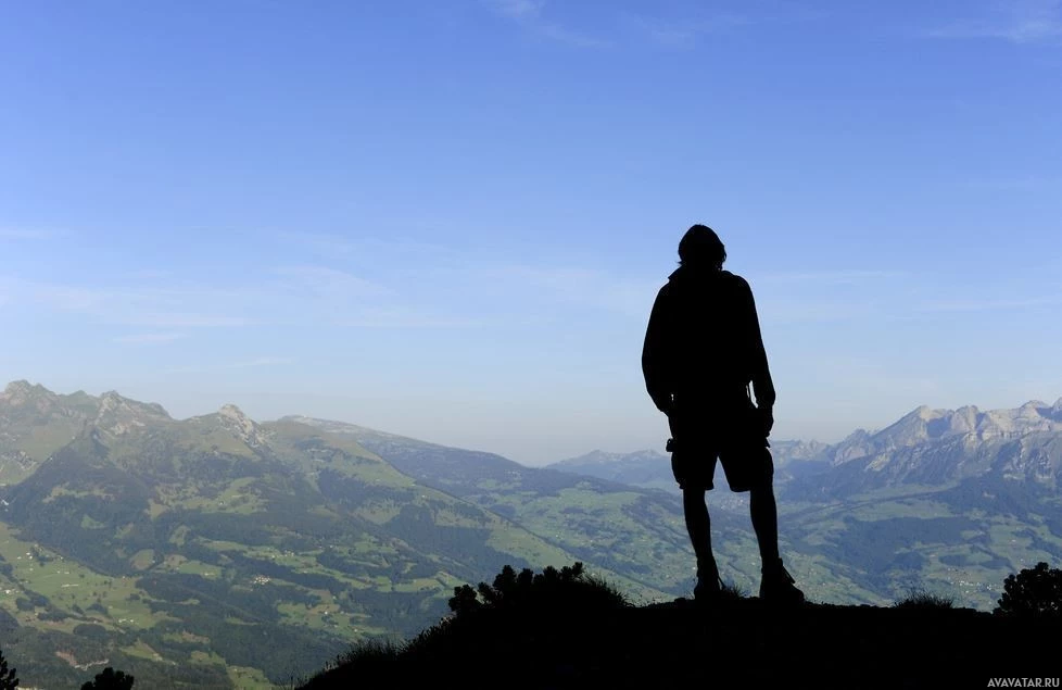 the soft lighting. The silhouette of the individual against this picturesque backdrop creates a striking contrast between the person and