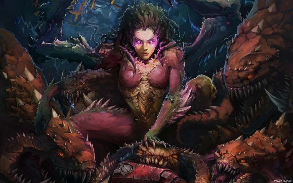 a character from the game "StarCraft." The character depicted is known as Kerrigan, a prominent figure in