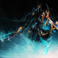 blue aura that contrasts with the darkness of his attire, suggesting he has some form of magic or supernatural ability.