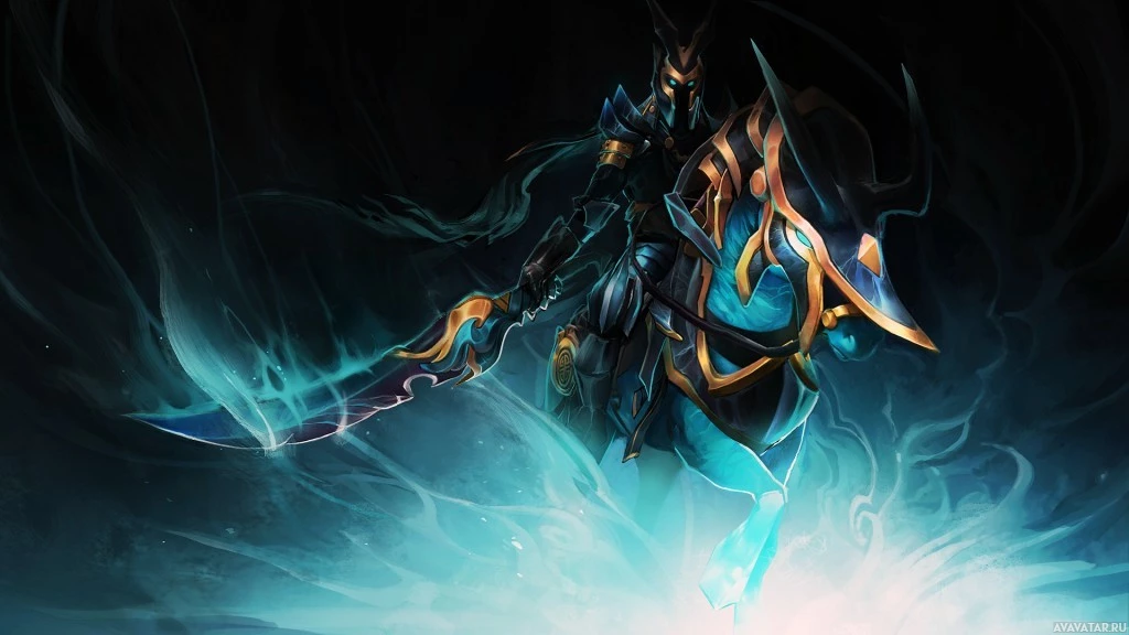 The image depicts a character from the game Dota 2. This is Abaddon, a warrior known for his powerful melee abilities and