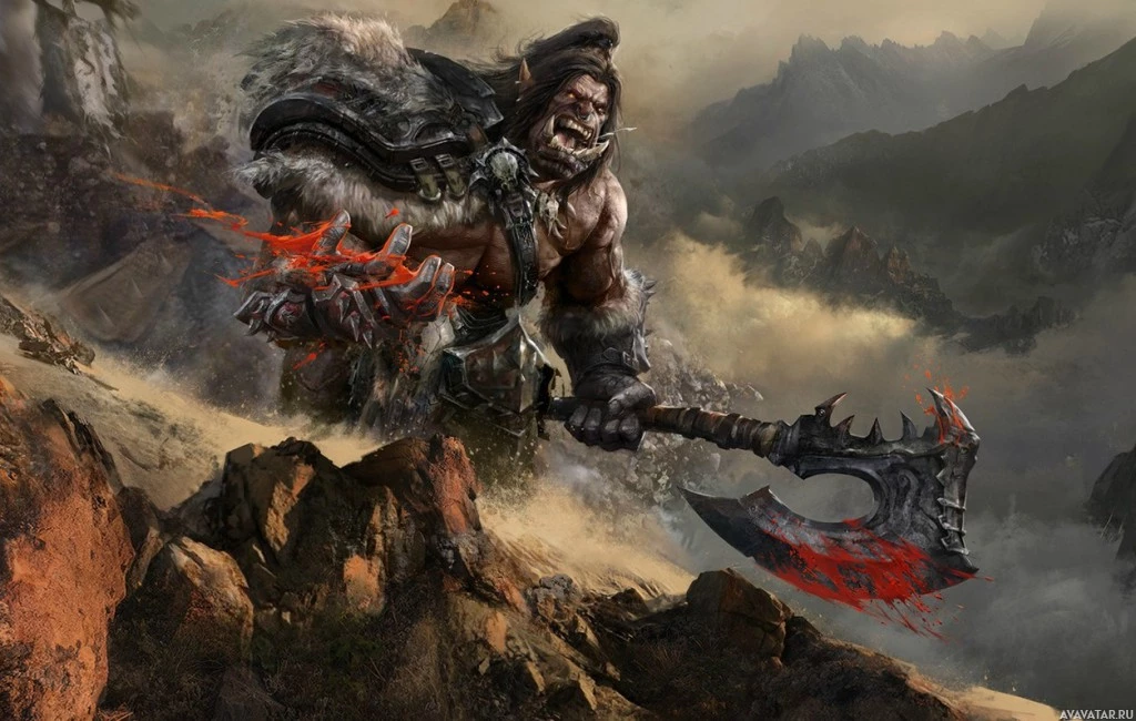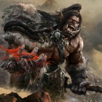 orc figure. The setting seems to be a rocky, rugged landscape, possibly indicating a scene from a fantasy