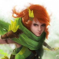the video game Dota 2, known as Windranger. The character is depicted with a green and yellow theme, which are colors commonly associated with the character in the game's lore and