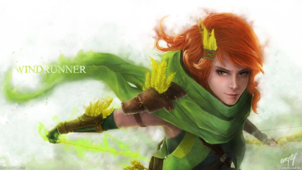 promotional materials. Windranger is known for her wind-based abilities and is one of many heroes playable in Dota 2, which is a multiplayer online
