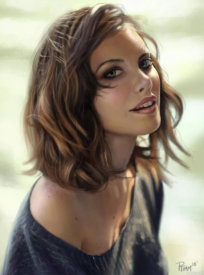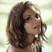 a gentle expression. She has short, straight hair and is looking slightly away from the camera, giving her