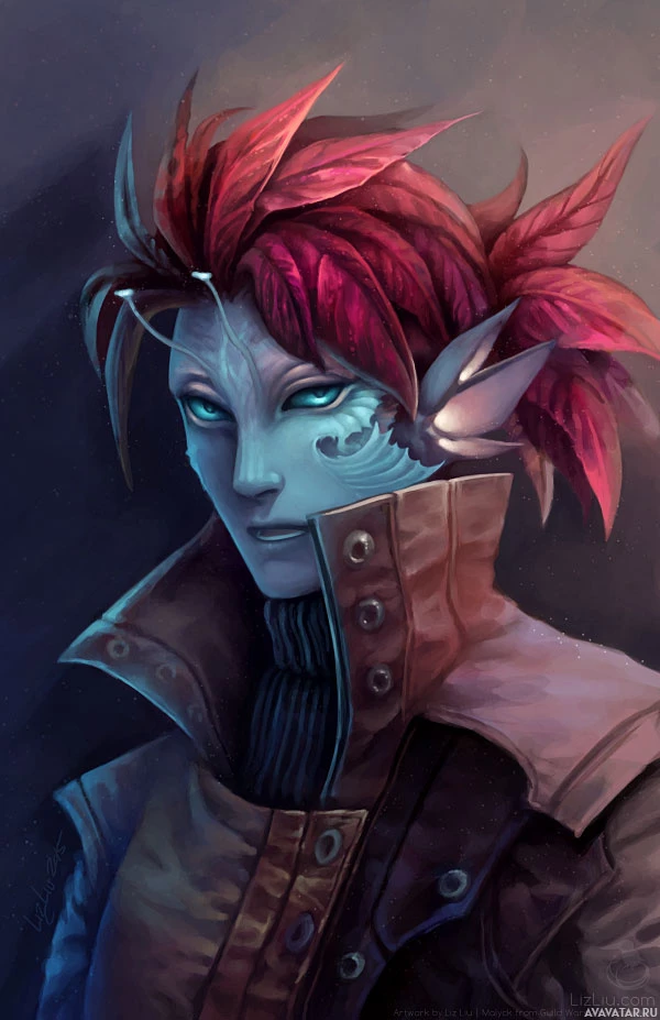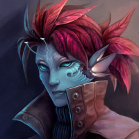 a fantasy character with an elf-like appearance. The character has prominent