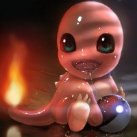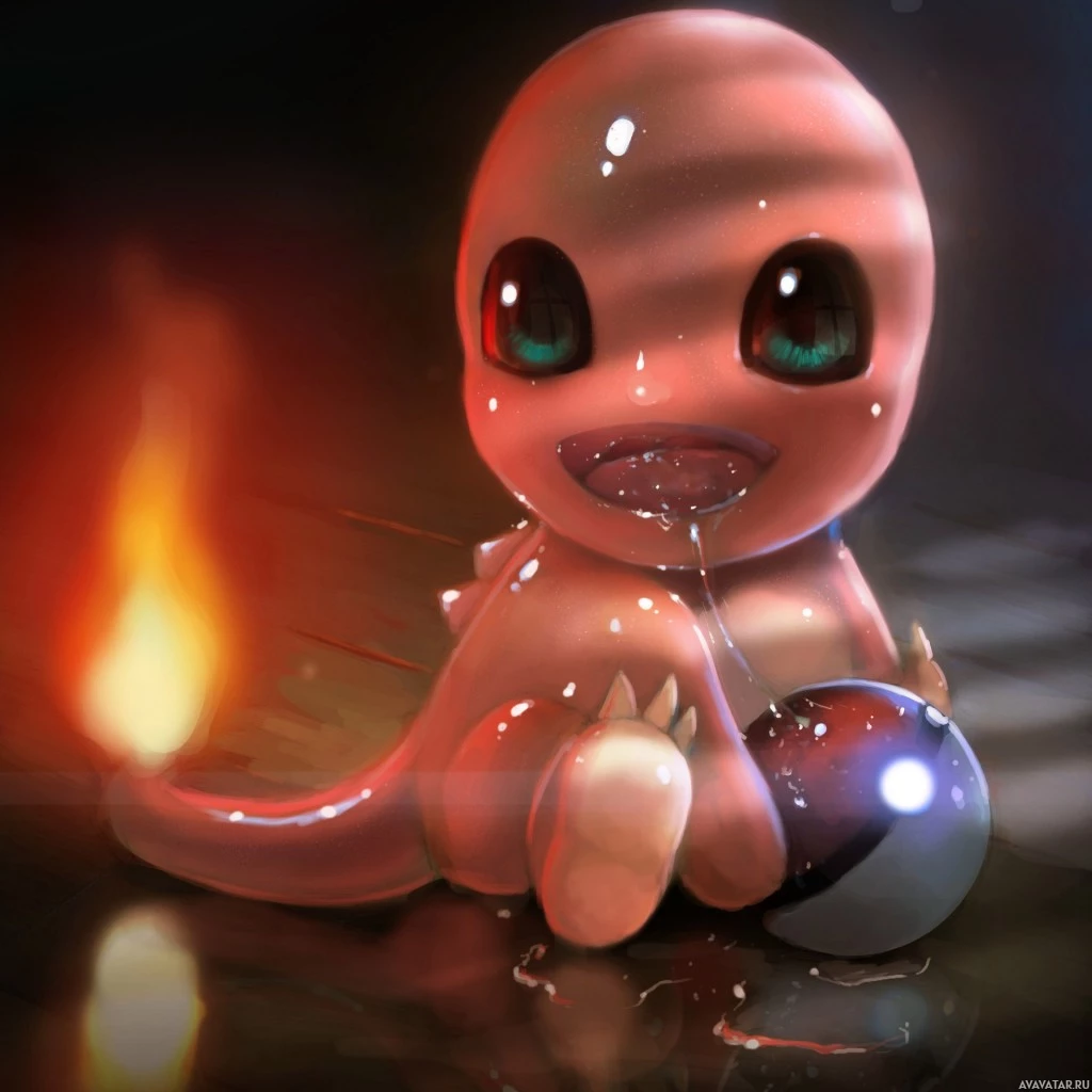 The image features an animated Pokémon character, which is a Charmander. This character is a small lizard-like creature with